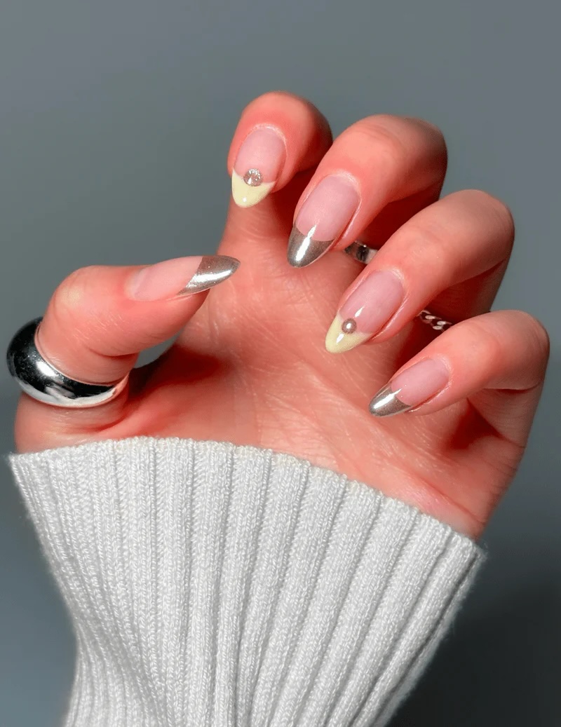 Akcent: Chróm aplikuj iba na jeden prst — modernejší minimalistický vzhľad s kovovým highlightom.